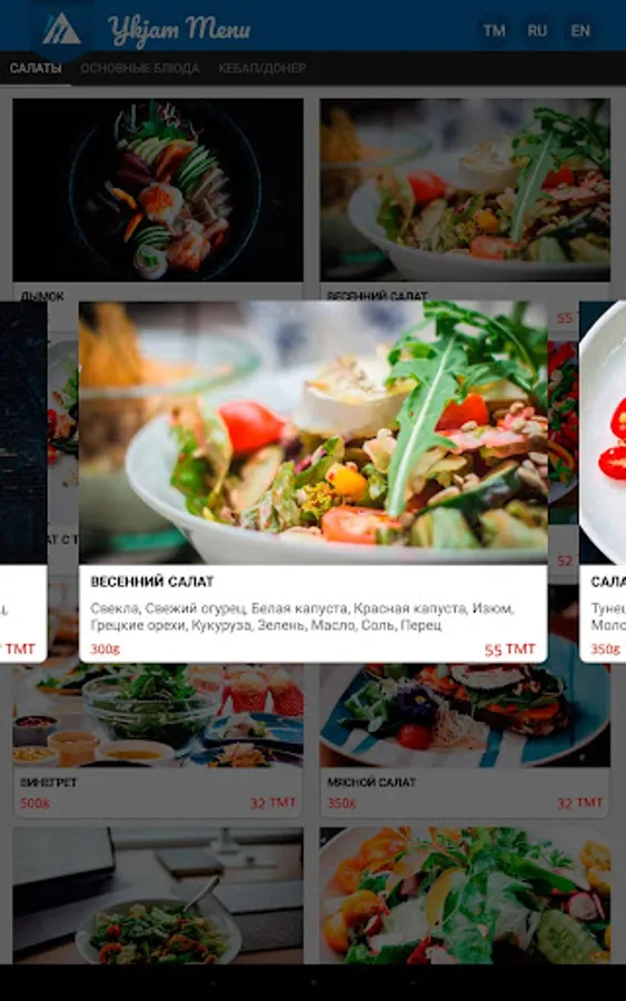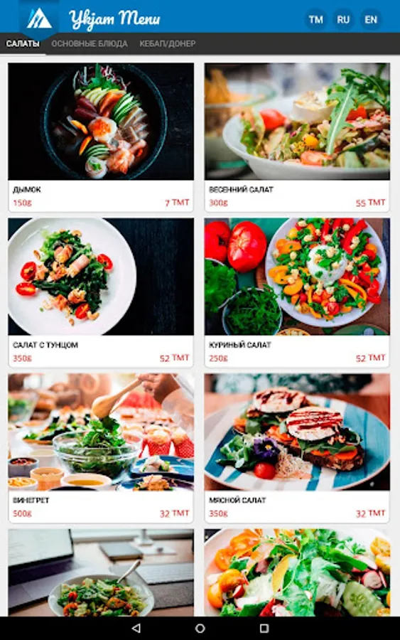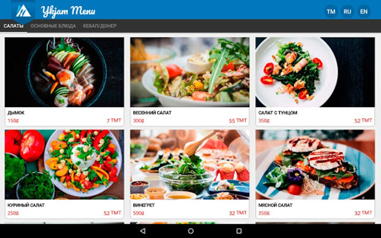 Note: A demo mode is available in the application. To complete the work you need to purchase the server part of the application. More information on menu.ykjam.tm.