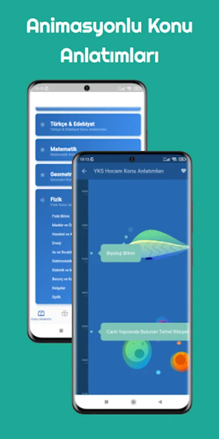 The YKS 2023 Teacher application allows you to learn the topics in an easier and more permanent way with the Lectures supported by graphics and animations for YKS, and increases your ability to solve questions and tests with thousands of free questions in the Question Bank database.