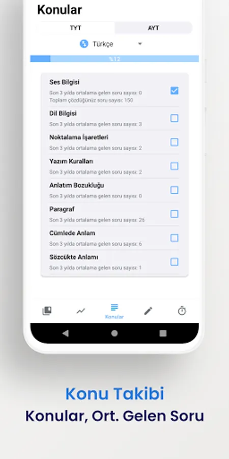 Follow the questions you have solved on the AYT Topics you have completed on a daily basis.