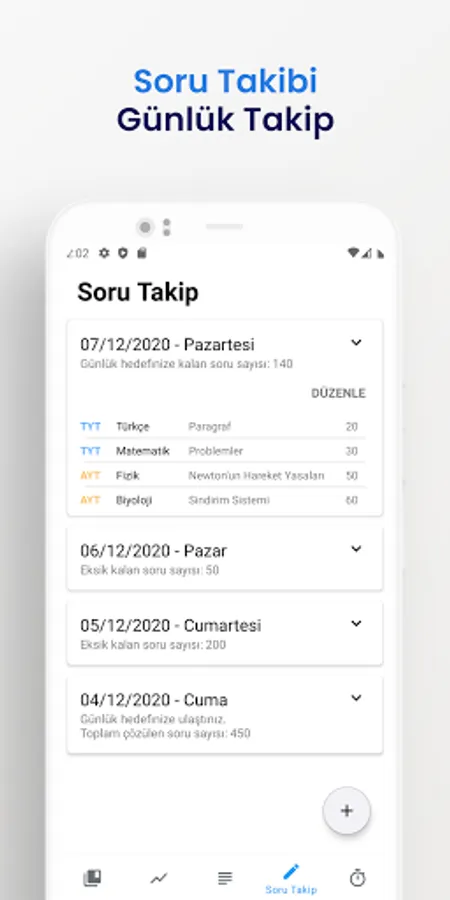 Follow the questions you have solved on the TYT Topics you have completed on a daily basis.