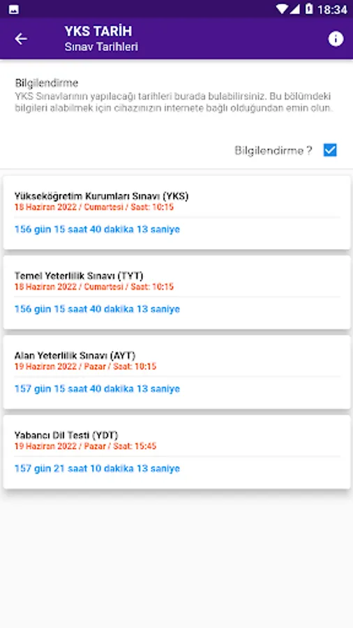 An Information Every Day: Every Day You Can Receive the Most Important Points of YKS History as Notifications.