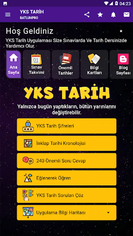 YKS History application helps you in your exams in History lesson and Topics. YKS History application is your best assistant in order to make candidates more clear and to create an application where they can easily study and read information from their smartphones that are with them in every sense, and to increase the success of the candidates.