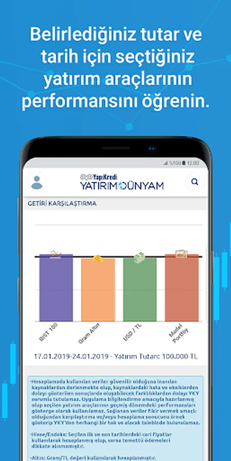 With Yield Comparison, you can learn the performance of the investment tools you have selected for the amount you choose, between the periods or dates you want.