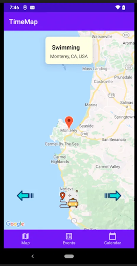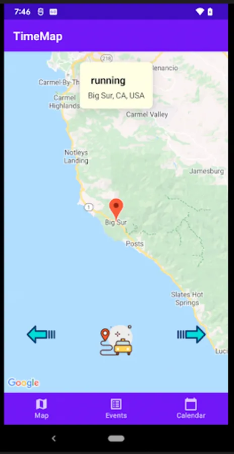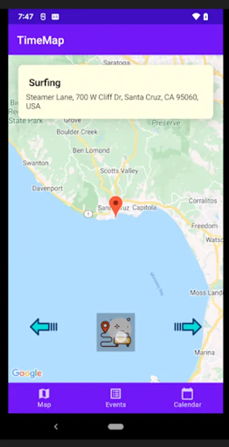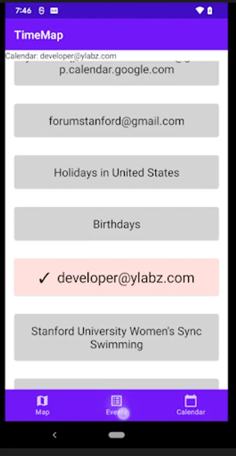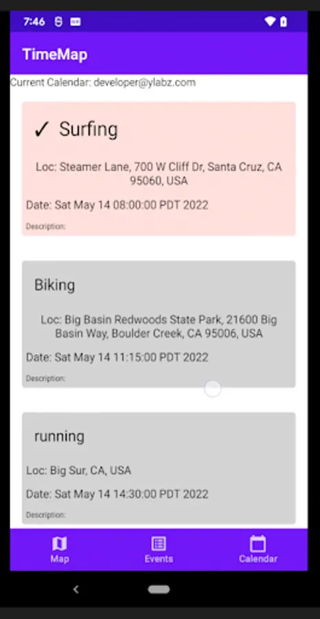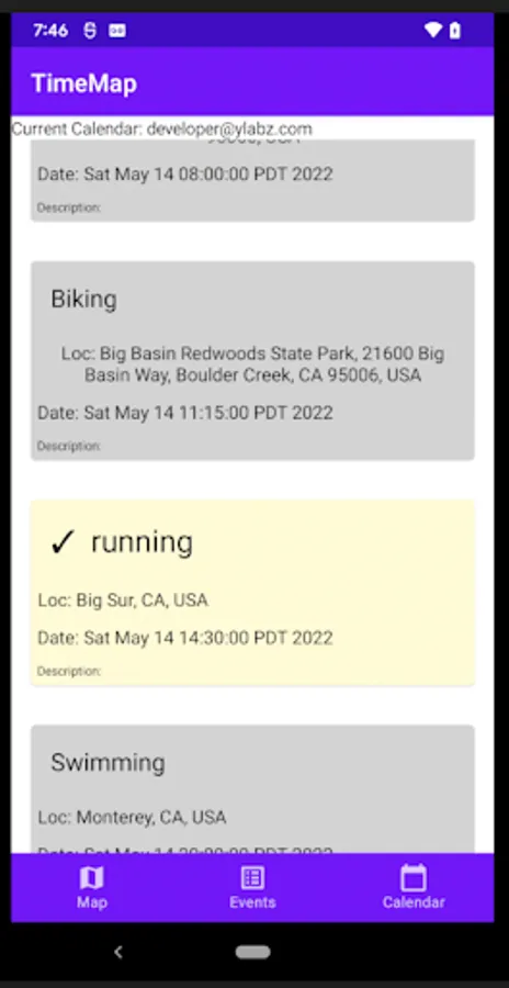 No longer need to open your calendars to see when & where your events are, just launch TimeMap and see all your calendars events on a map. Your time mapped out! You can even get the route from your current location and see the traffic.