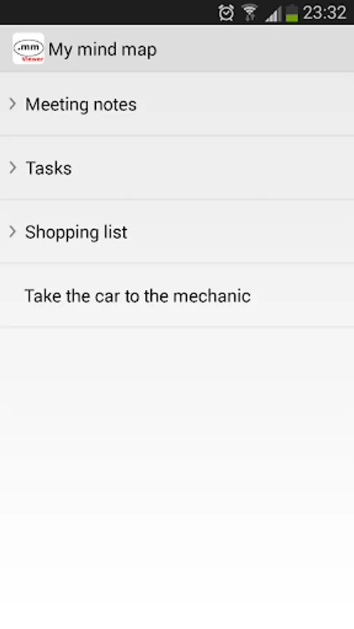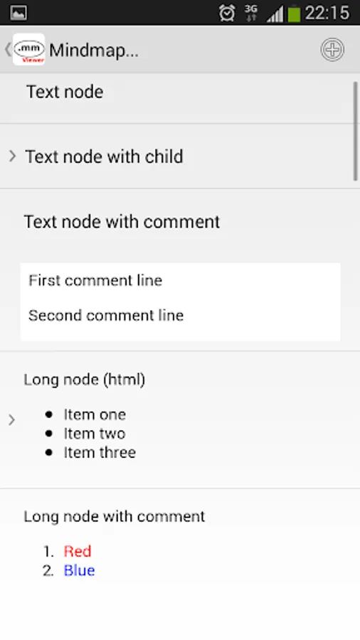 To open a mindmap use the built-in file browser (ANdroid 4.4+) or locate it on your phone by using Google drive, Dropbox, a file browser or something similar. Then clicking on the file will open it with the viewer. You can also create new file locally on your device.