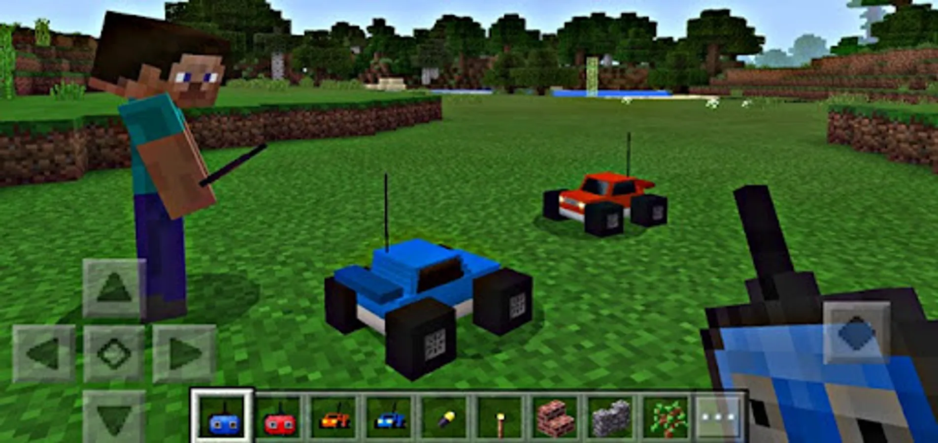 This add-on replaces two of the mobs in-game with radio-controlled cars. You control an RC car by using the throw mechanism to decide where you want your car to drive. It's a really fun and creative add-on which never really been done before. The add-on is very well made and includes custom sounds, particles and other cool details. You'll love it!