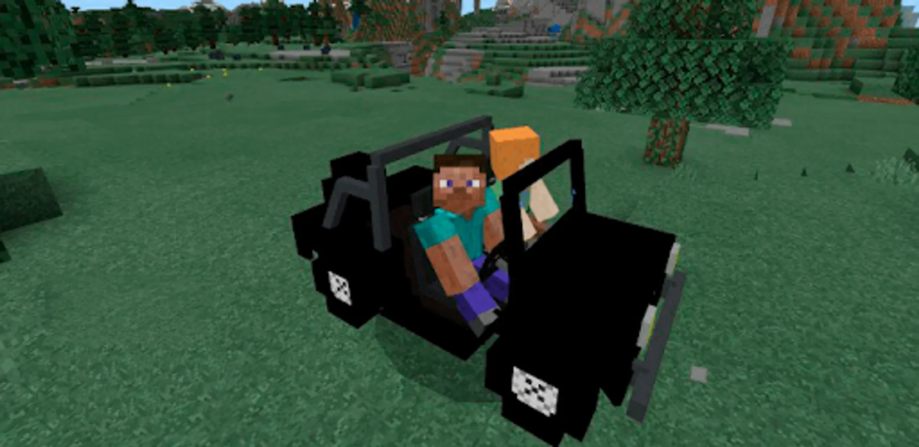 It's time for some serious wheelbarrows! The Jeep mod for Minecraft PE adds a vehicle of the same name to the game, in which you can not only travel around the world, but also crush aggressive enemies!