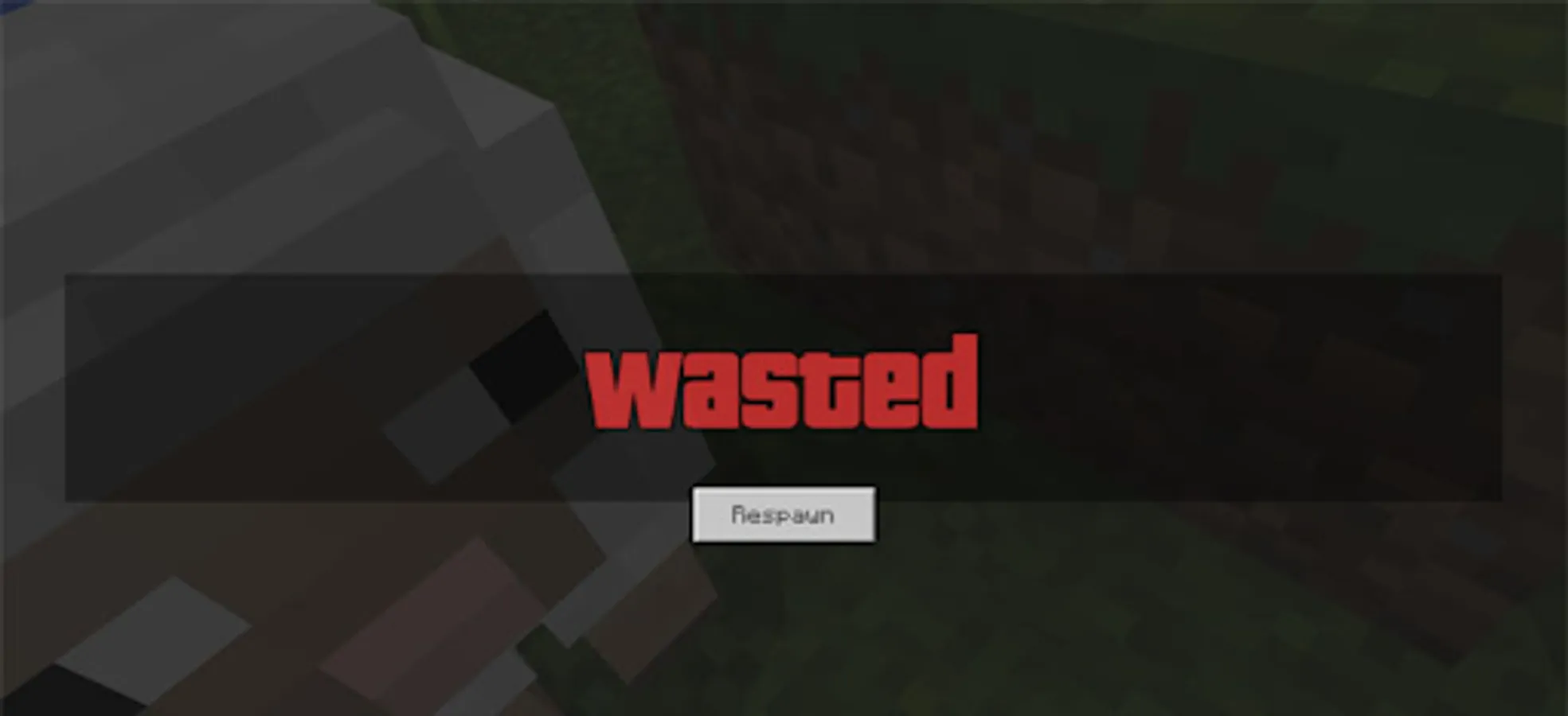 The Wasted screen appears in Grand Theft Auto if a player loses all of their health either by being severely injured or collapsing. This resource pack takes that death screen and brings it to Minecraft. The sounds has also been altered to be more in tune with the death screen in GTA.