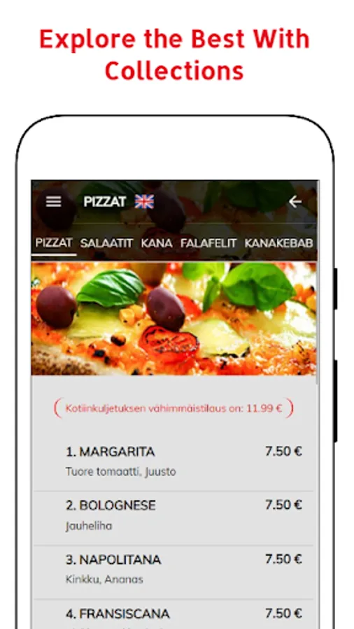 Ylästön Pizza & Kebab & Grill ravintola-applikaatio käyttää terminaalilaitteen tietoja toimiakseen mahdollisimman