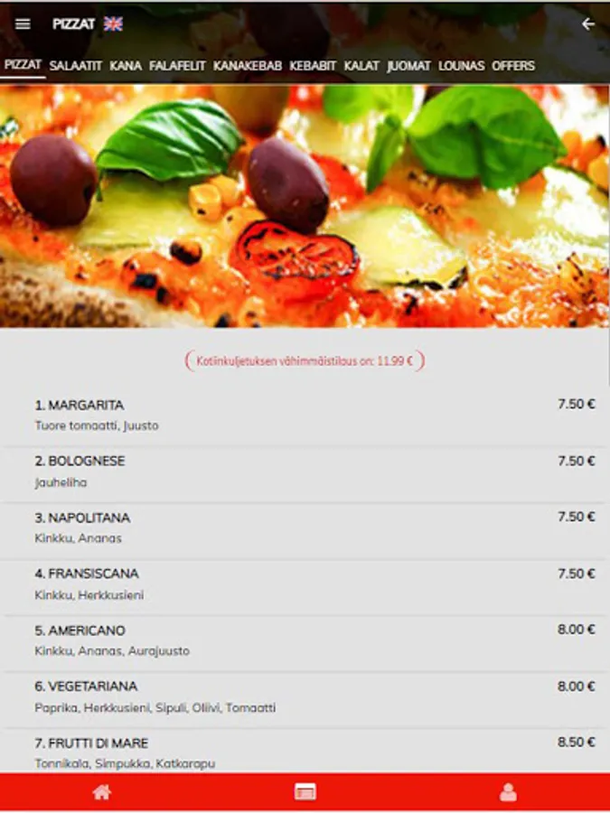 Ylästön Pizza & Kebab & Grill ravintola-applikaatiossa on myös seuraavat toiminnot: