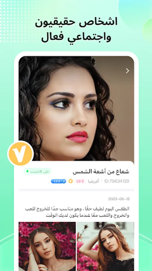 We have an active community of women users. We will offer you a new social experience and allow you to communicate and interact with beauties from different Arab countries. Women users here are very involved. 🌏