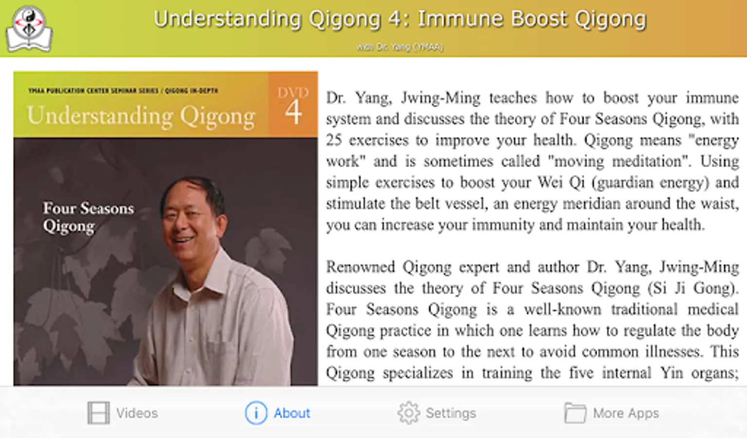 Bagua Zhang Eight Trigrams Kung Fu by Liang, Shou-Yu, Dr. Yang, Jwing-Ming and Chenhan Yang (YMAA). Learn the most popular forms of Bagua with these streaming video lessons, including Eight Palms, Swimming Body, and Deer Hook Sword forms. This video app has three segments, each available with a separate In-App purchase.
