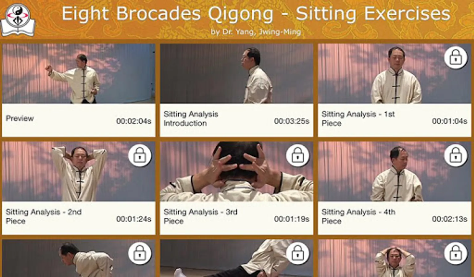 This app gives you sample videos and offers an opportunity to get the full sitting qigong video at the lowest possible cost. Now you can practice Master Yang's popular qigong exercises using your phone or tablet. This is a convenient training tool you can bring anywhere, to access this amazingly powerful exercise whenever it fits best into your day.