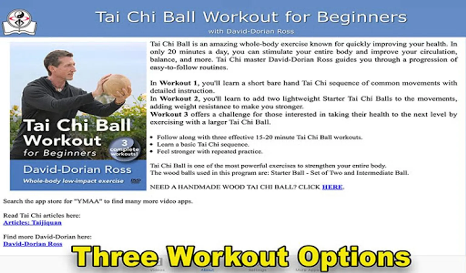 • Follow along with three effective 15–20 minute Tai Chi Ball workouts.