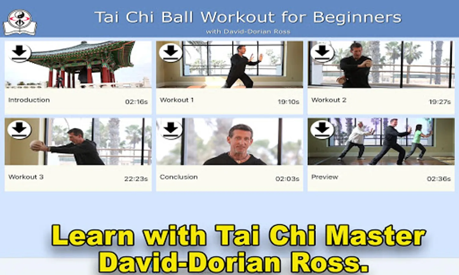Stream or download video lessons with master-teacher David-Dorian Ross. Tai Chi Ball is an amazing whole-body exercise known for quickly improving your health. In only 20 minutes a day, you can stimulate your entire body and improve your circulation, balance, and more. Tai Chi master David-Dorian Ross guides you through a progression of easy-to-follow routines.