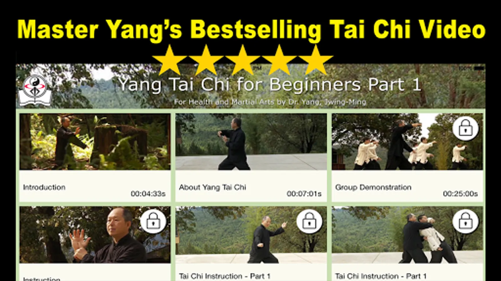 60 minutes of sample videos! Learn the complete Yang-style Tai Chi long form with step-by-step instruction by Master Yang (with front and rear view). Part 1 of Yang Form. In-app purchase $9.99 gets access to 2.5 hours of video lesson from the $40 DVD with detailed teaching by Master Yang.