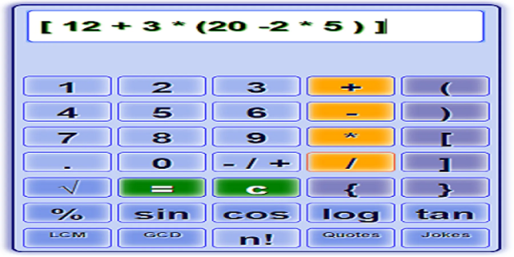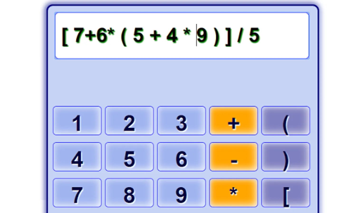Matematica Calcolatrice con parentesi tonde, quadre e parentesi graffe.
