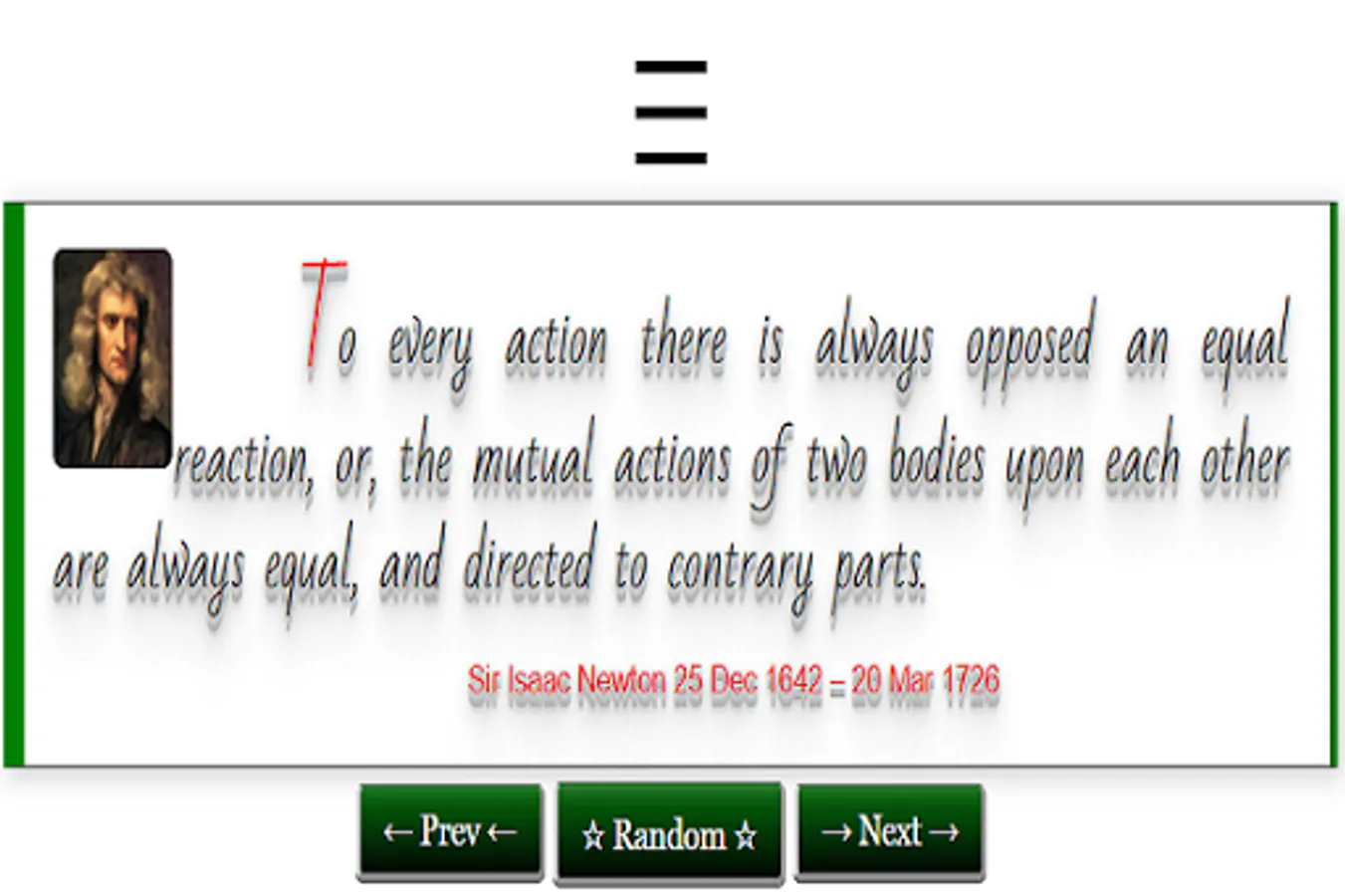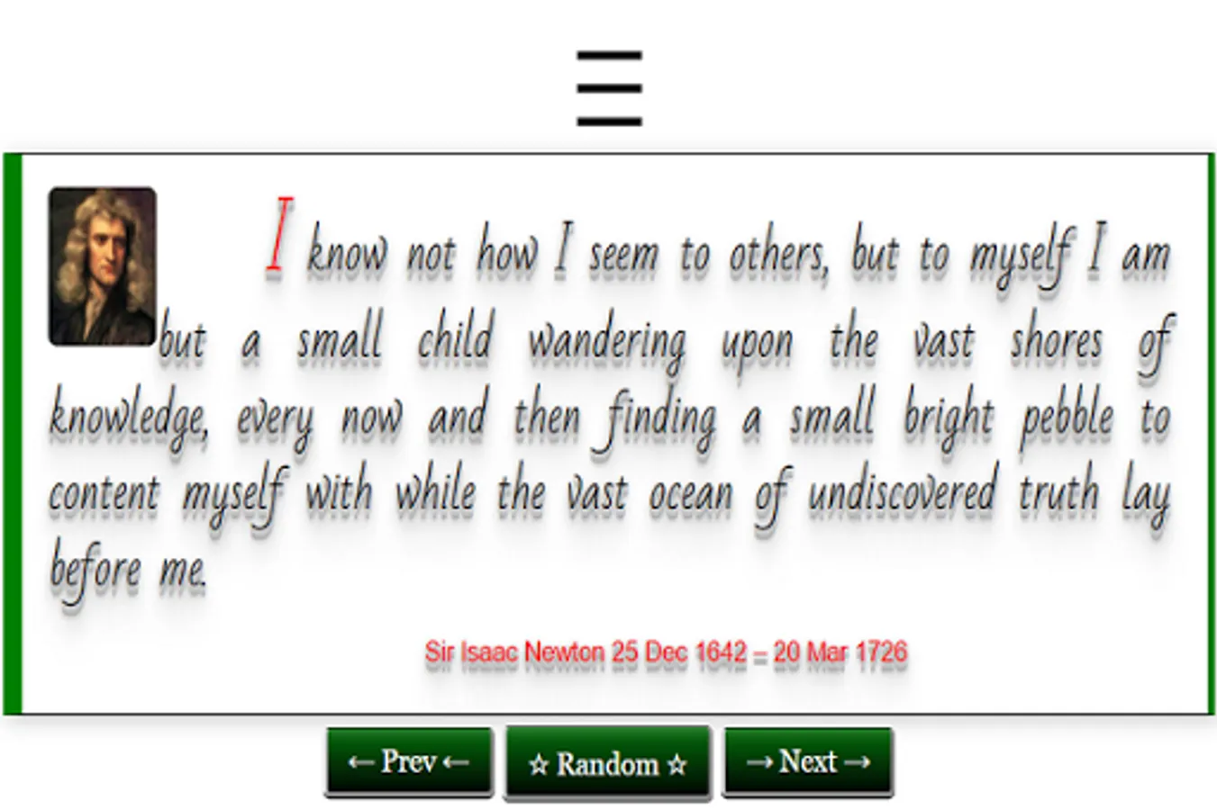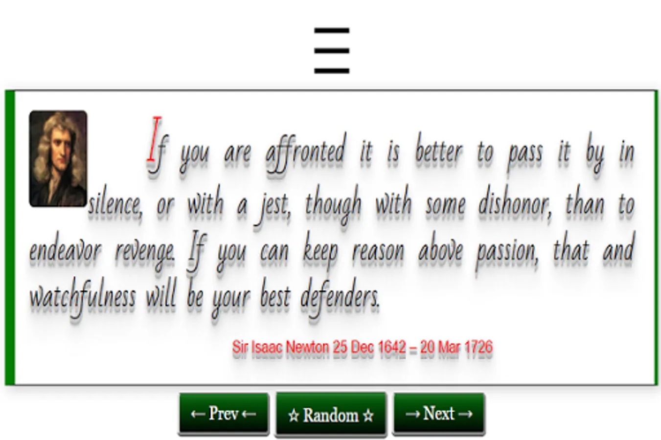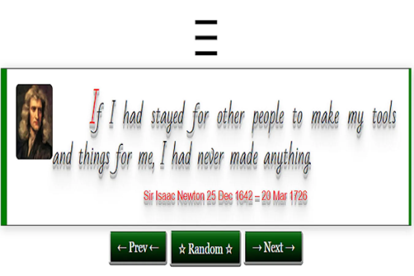 To read a new Quote and get Inspiration & Motivation you may click the Previous, Next or Random Button.