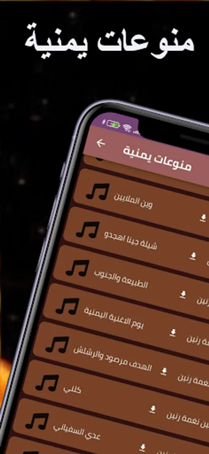 - The Yemeni Music application: Yemeni songs allow you to listen to famous Yemeni songs through your mobile phone or tablet with ease and ease through one program that contains Yemeni songs in sessions. The Yemeni songs application is also distinguished by being free and available on the store for Android phones. You can download Yemeni oud mp3 songs with ease, so that you can enjoy the most beautiful Yemeni songs, as well as Yemeni songs, sessions with a beautiful voice.