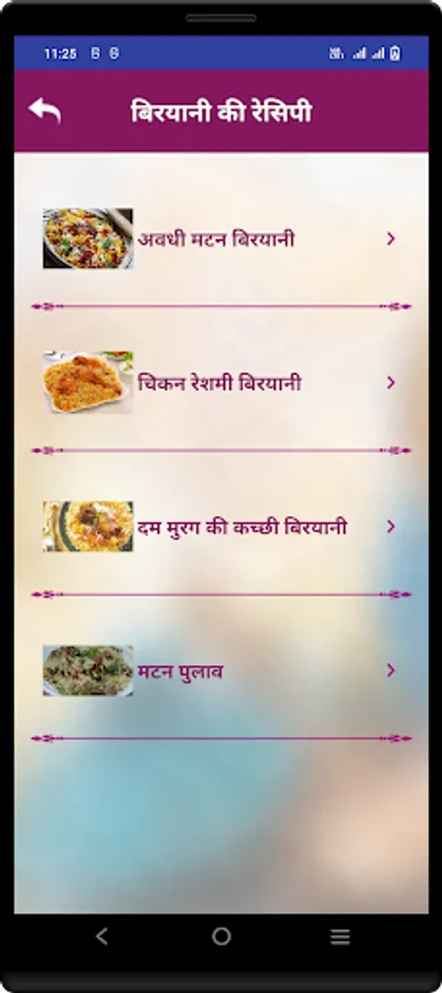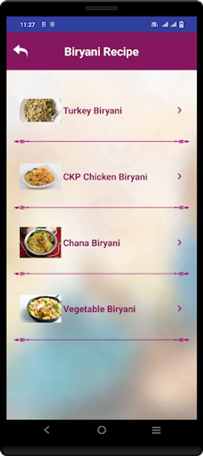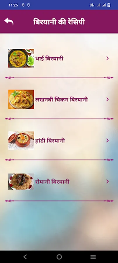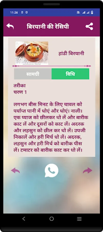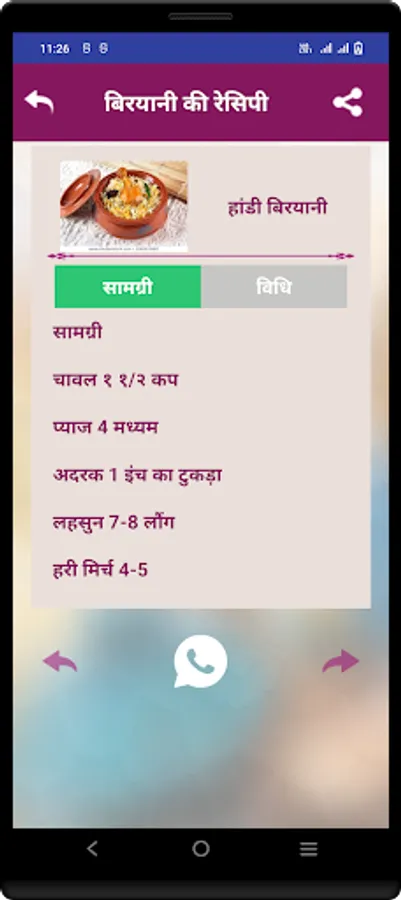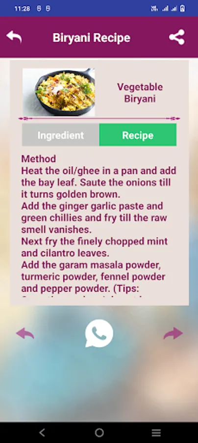 The user of the app can favorite a recipe and easy to show in the favorite page. All the recipes in this easy cookbook have been organized and cataloged so that you can relate the recipes by Categories, Cuisines and Ingredients. You can use it in daily basis for different type of food or you can also use it in party and festivals. This Application contain the recipes in Hindi in following category Biryani Recipes App is giving to cooling guide to people in hindi languages.
