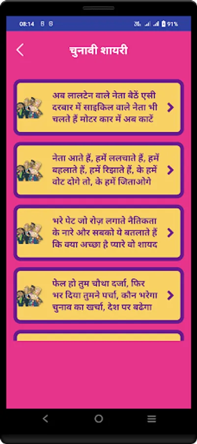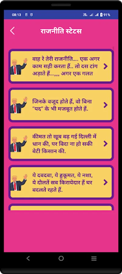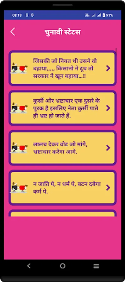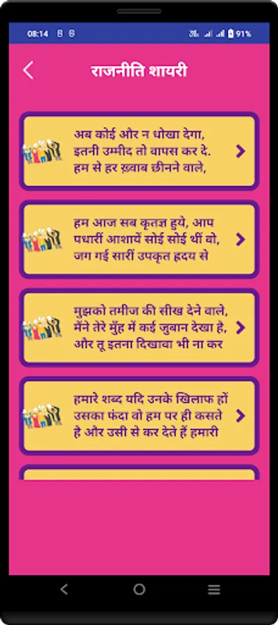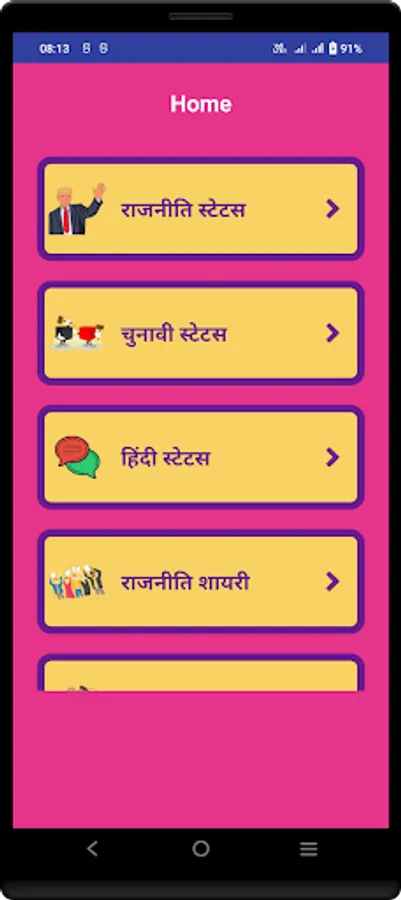 This app contains largest collection of hindi Politics Shayari, Election Status, Vande Mataram & Patriotic shayari Status.