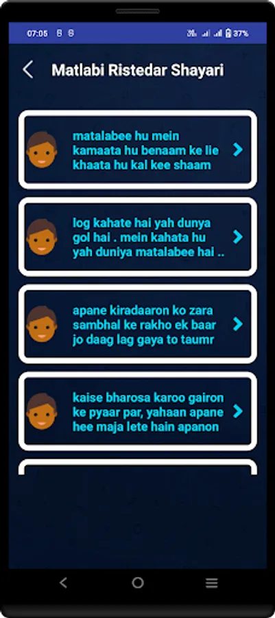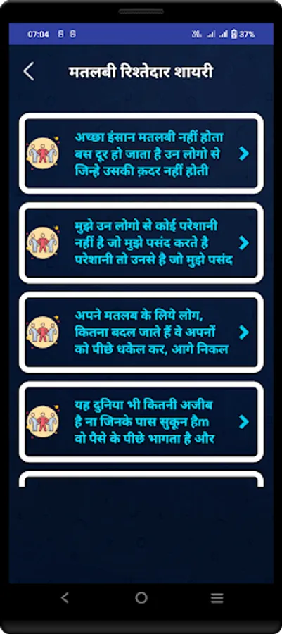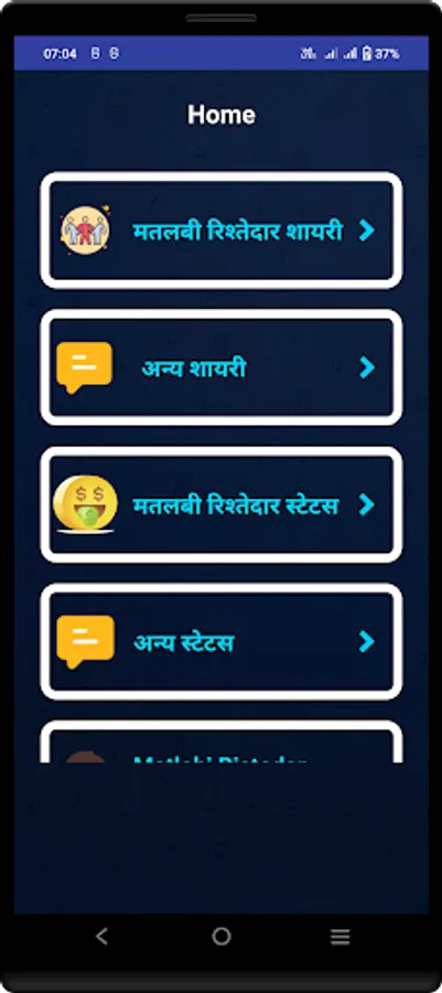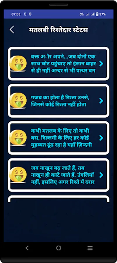 This app contains largest collection of hindi Matlabi Relatives Shayari & Status.