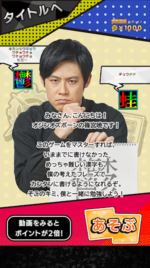 Ojin Osborne Shinomiya's playful "Kanji memorization in seconds" is now a game where you can learn kanji while playing anytime, anywhere.