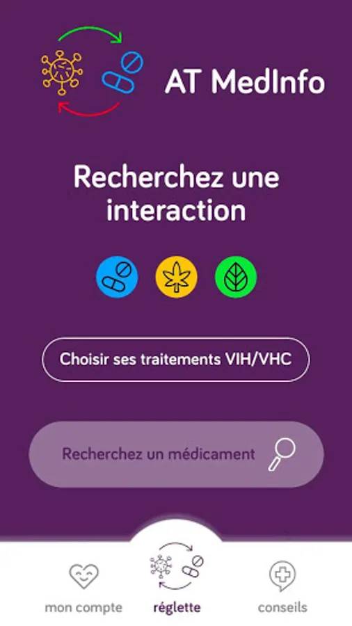 The AT MedInfo application checks the interactions between HIV / HCV treatments and the most prescribed drugs, herbal remedies and drugs. This tool was developed by Actions Traitements, an approved patient association, which has been helping, supporting and supporting people living with HIV and / or hepatitis for more than 25 years.