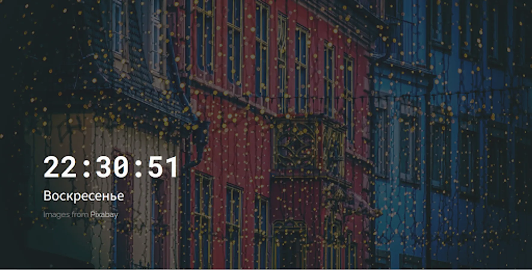The application comes pre-installed with 5 active screensavers and images that you can use on your desktop. In addition, screensavers can display additional widgets: weather widget, clock widget, and others.