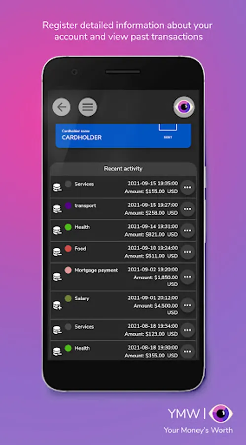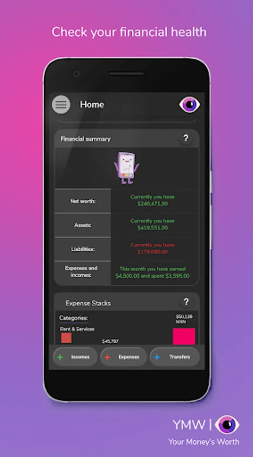 Your Money’s Worth will help you to register your financial activities efficiently so you can keep up with your situation easily.