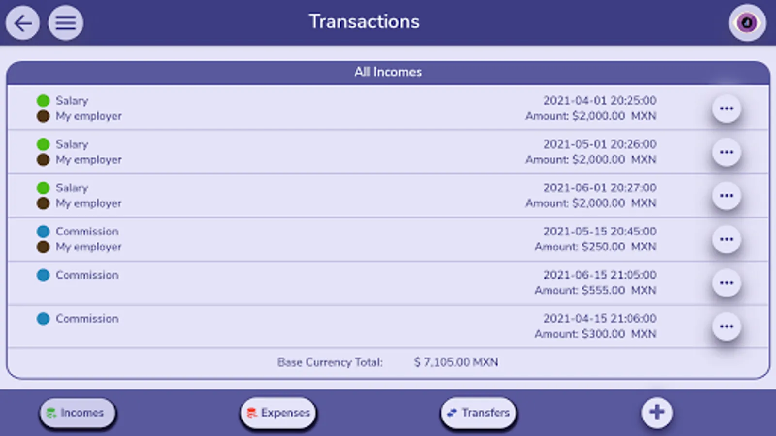 Then you need to register your income and expenses regularly. This is key to get the most out of the app. Each income or expense can be associated with a payee and a category which allows you to group them together. Additionally, you can set a transaction as recurrent, define frequency, duration, and notifications so the app reminds you accordingly.