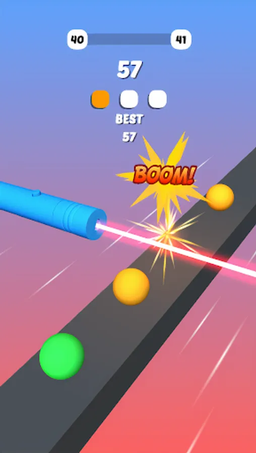 You have never played bubble shooter like this before. Clear all colors and pass levels. There is no time limit, just touch at the right time. Become a laser master.