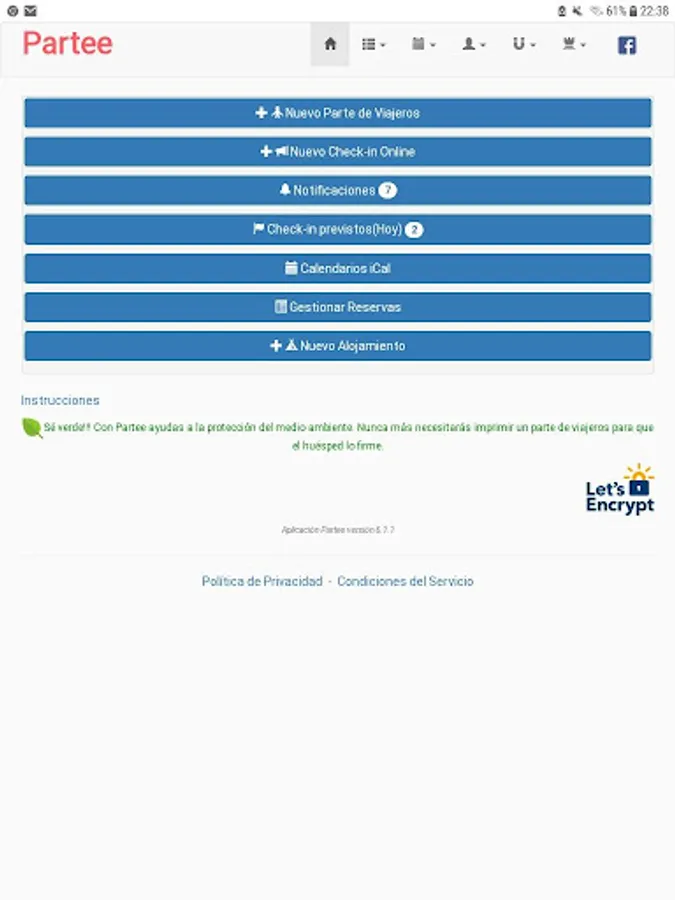Partee generates the entry parts for travelers or police records, and automatically sends them to the National Police, Civil Guard, Mossos d'squadra or Ertzaintza, with all the information and format required by the regulations on registration books and entry parts of travelers, correctly numbered and signed by guests.
