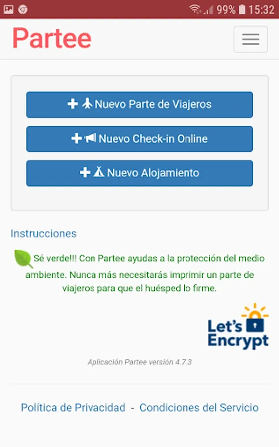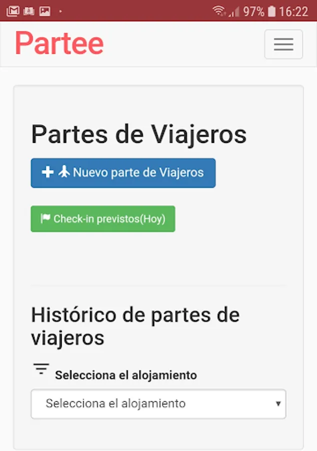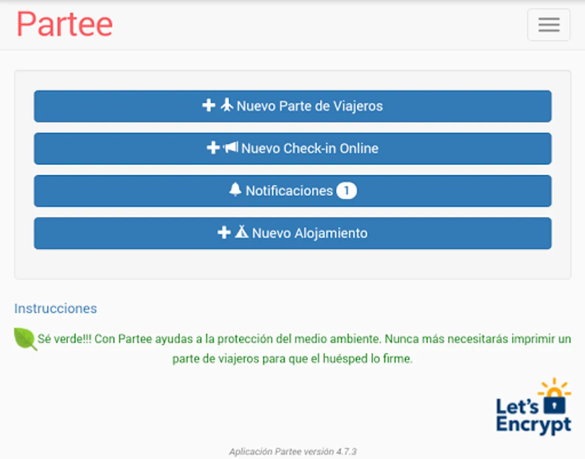 Available on APP and web ( www.app.partee.es ), and with the best and safest online check-in, both for you As for your guests, they will not have to install any APP.