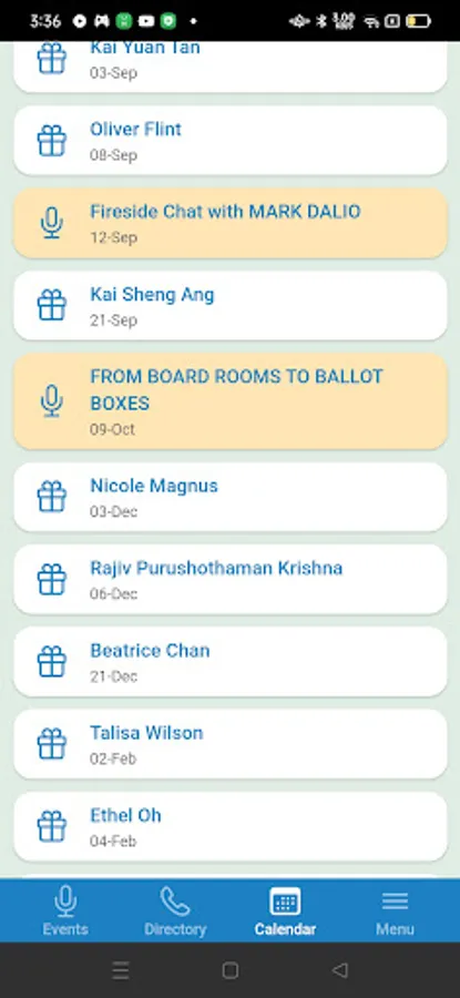 CALENDAR : Calendar of Birthdays, Anniversaries of Members and Spouses.