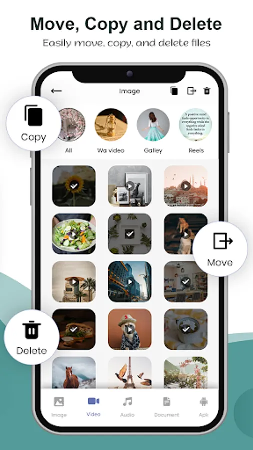 In this app, you can see all internal and external storage files like images, Videos, audio, Documents, and APKS. You can easily open any files of external and internal storage. In this, you can move and copy any files from internal storage to external storage and external storage to internal storage. In this, you can also delete any file if you want to delete it.