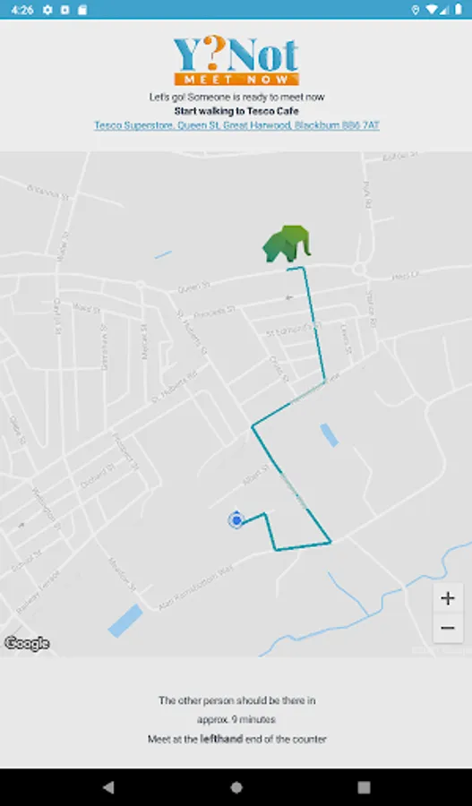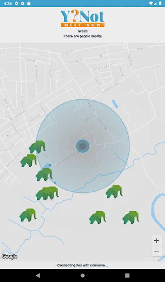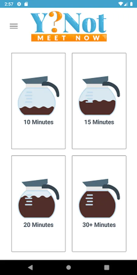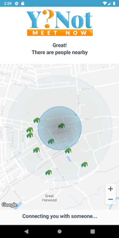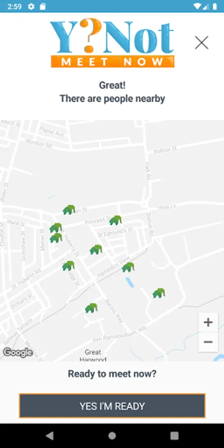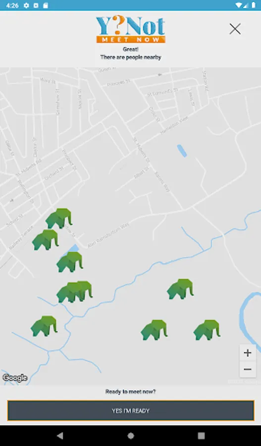 Y?Not uses your phone, to find someone nearby and then guides you both automatically to a public meeting spot, where you can get to know each other for 10 minutes or more over a coffee and a chat.