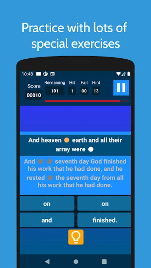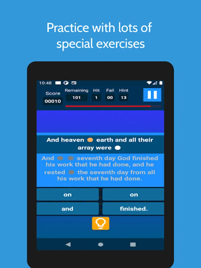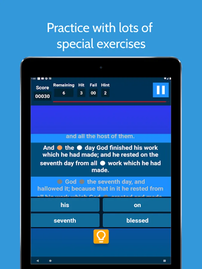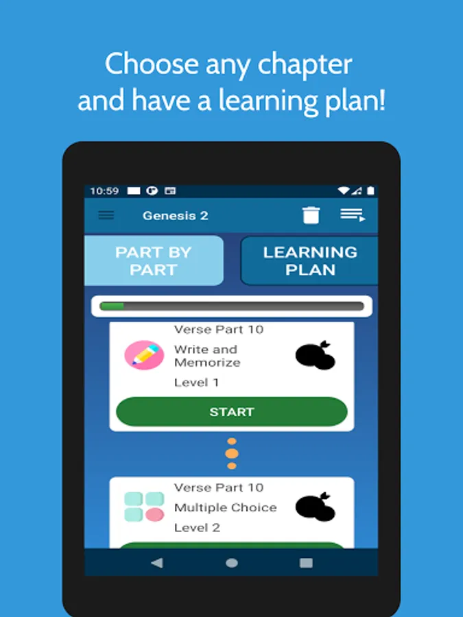 The best Bible learning app! Recite, fill the blanks, write the entire verse! Whatever you're looking for is in this app! Your Learning Assistant.