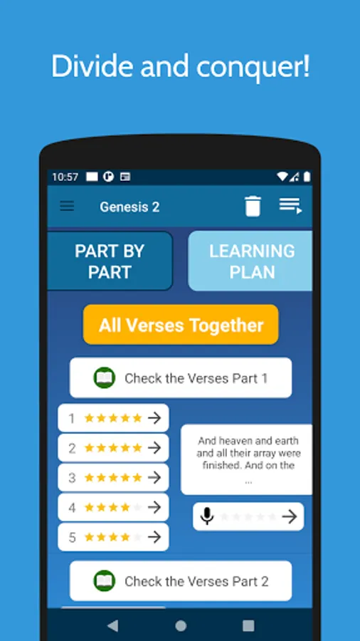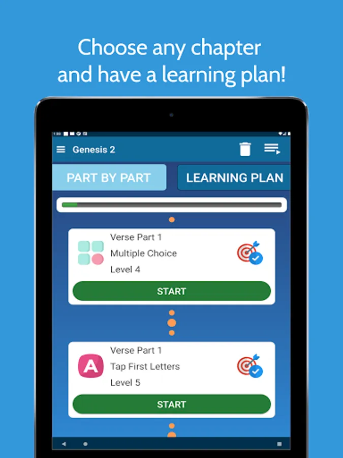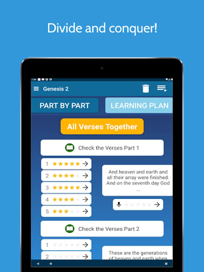 App will seperate the chapter into verses and create learning practices for each verse.