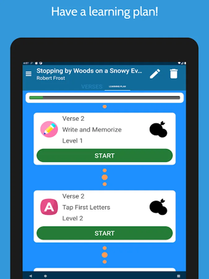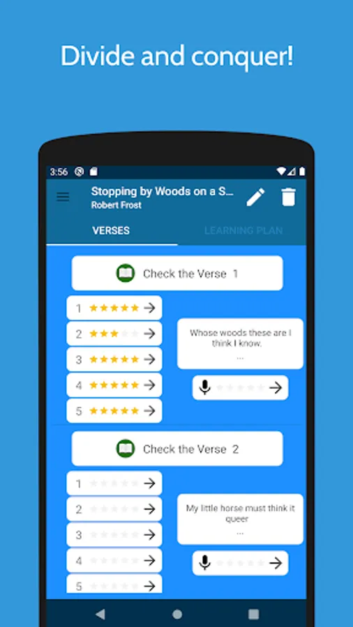 This app applies Divide and Conquer method and provides a learning plan that makes memorizing anything fun and easy!