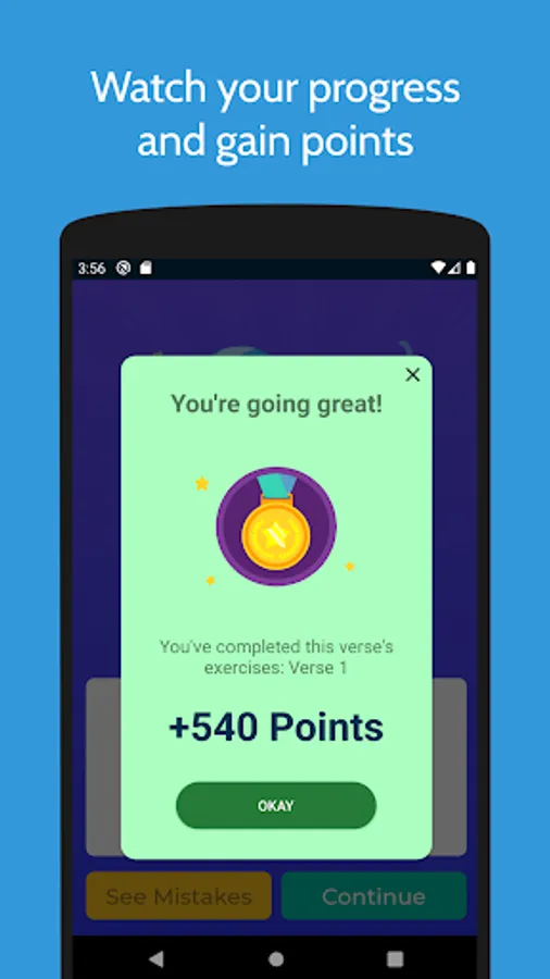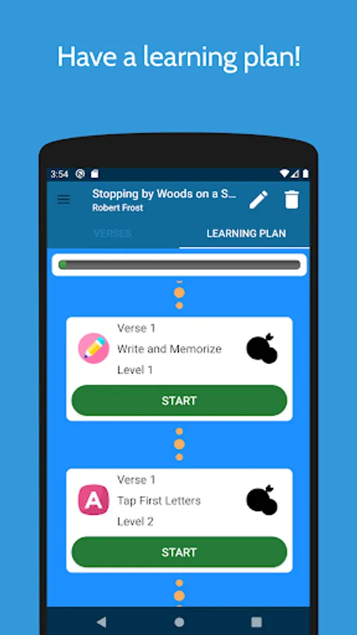 The app creates memorization exercises for your content and makes you go on a learning journey by making exercises difficult step by step.