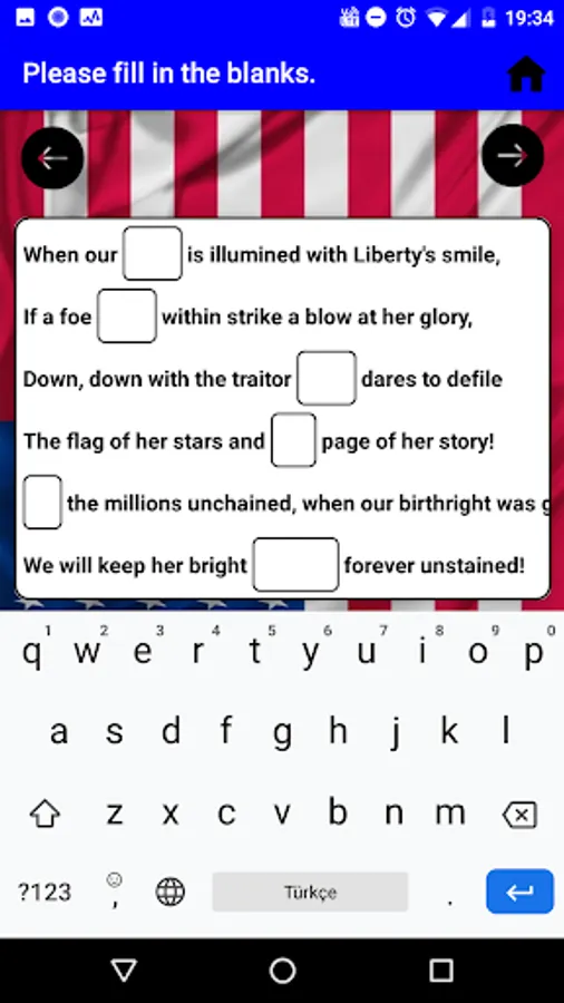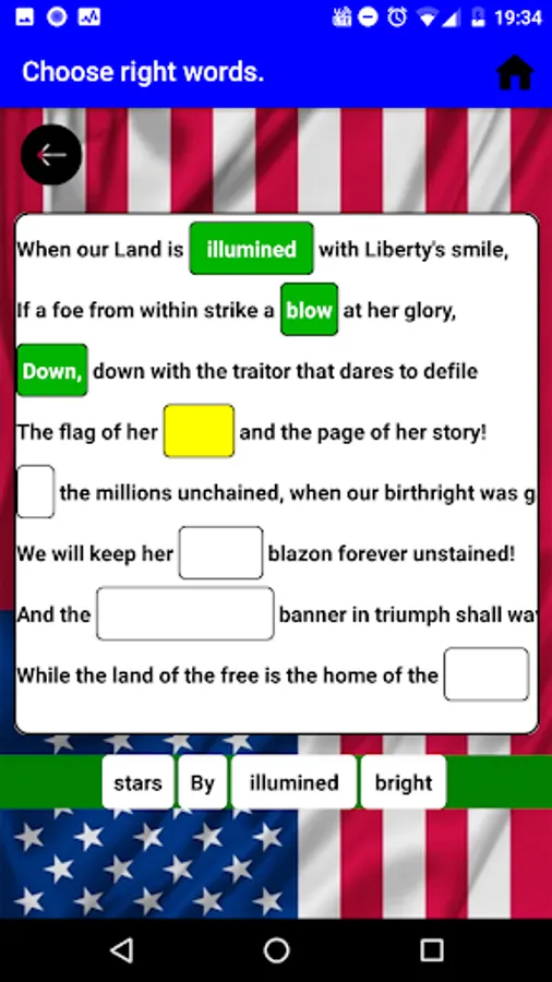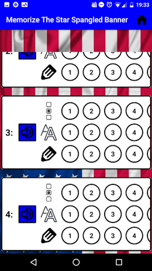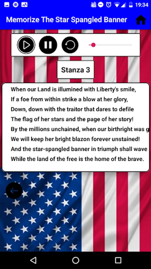 This app is designed to memorize and listen verse by verse Natonal Anthem of US (The Star Spangled Banner). National Anthem of United States of America with 4 verses.