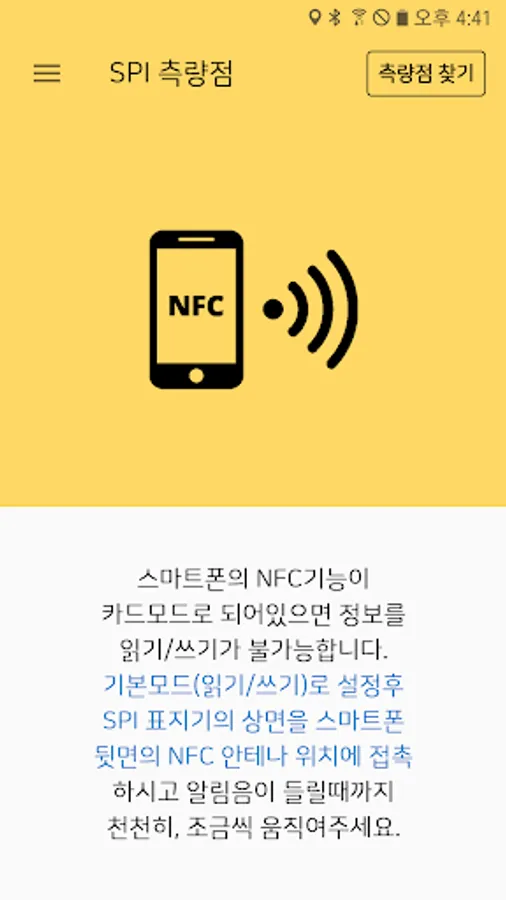 ◎ When recording information, move the upper side of the SPI survey reference point toward the NFC antenna position on the back of the smartphone. A clear alarm sounds when stored correctly.