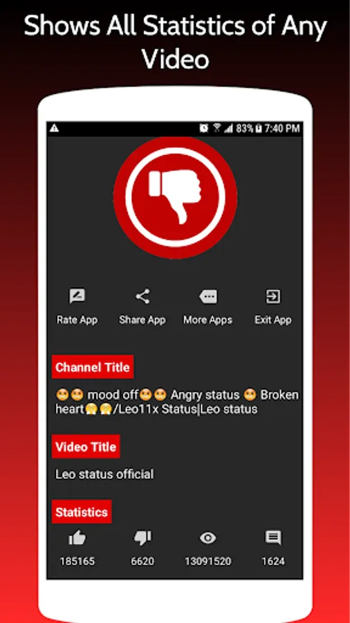After the official announce, the dislike counter is no longer appear in the video app, but now, with Yo Dislike Checker App, you can see the dislike count as well as the likes, views, comments count and the Video Title and Channel Name.