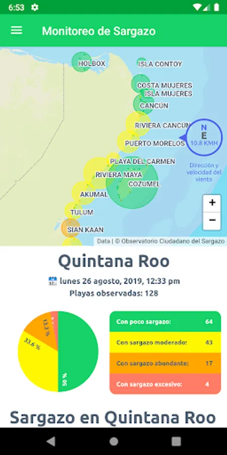 The Sargasso Citizen Observatory puts in your hands all the updated information on the situation of the beaches in the most visited tourist destinations: Cancun, Playa del Carmen, Tulum, and many more. Know which beaches are suitable for swimming, which beaches are the most affected and what is the forecast in the next few hours.