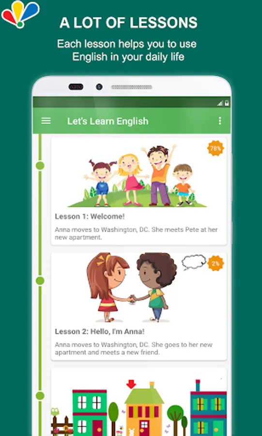- 50+ Interactive Lessons: interesting lessons with conversational English, grammar topics, vocabulary, writing and more from VOA Learning English lecturer. All lessons work offline as well.