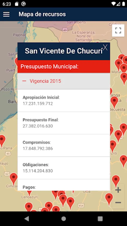 App Audit, an application for the general use of Colombian citizenship. Where they can make reports of inappropriate expenses in their municipalities, also from the resource map see the total budget and hiring contracts made for validity.