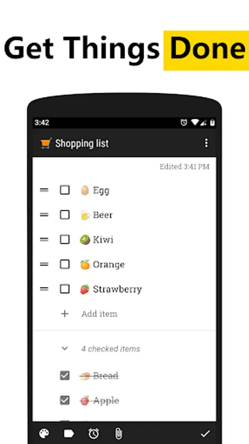 In to-do list mode, you can add an unlimited checklist. Arrange their order with a simple tap and move. When finishing with an item, you can perform a simple tap to strikethrough it.
