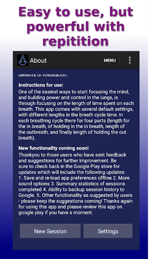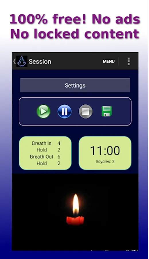 This app comes with several customizable settings – including breath cycle, sounds played during each cycle, and the timing of each breathing exercise (i.e. how many cycles to include in the cycle). More free functionality is planned in the next few months - so be sure to check for updates.