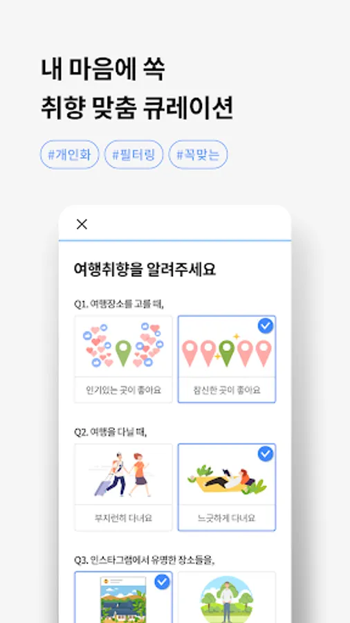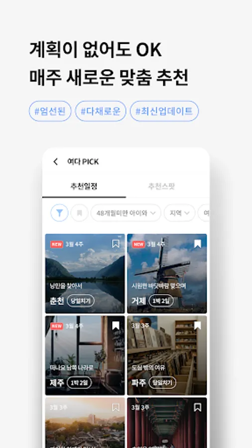 We prepared this for travelers who think, 'Is this really a good place?' In addition to the basic information and star ratings of each travel destination, Yeoda will show you recommended tags with the reason for recommending each travel destination, as well as links to blogs and videos where you can get a glimpse of other people's vivid reviews, all on one page! In case you don't like it, we'll also inform you of nearby travel spot candidates.